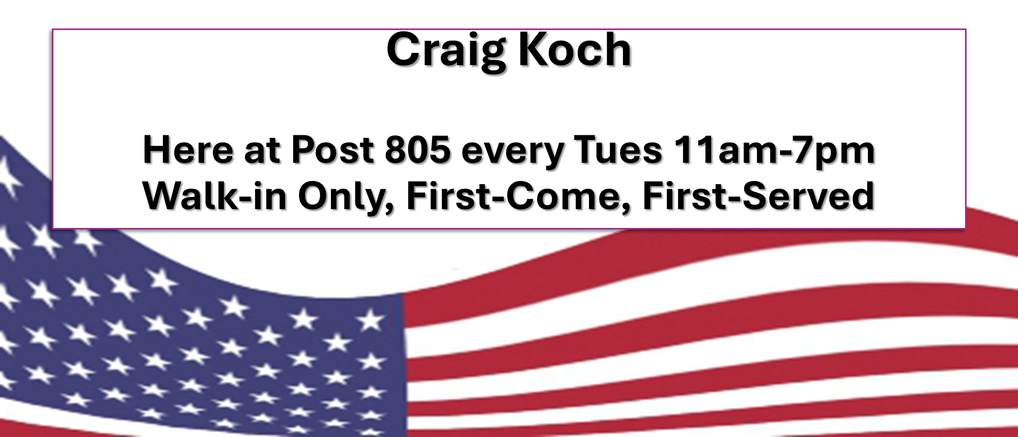 General Membership Meetings for the Sgt. Charles A. Fricke VFW Post 805 are held on the first Tuesday of each month at 7pm.